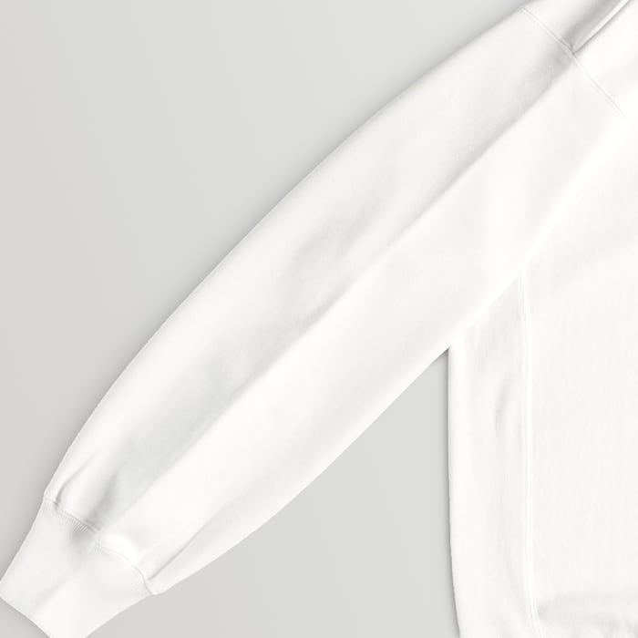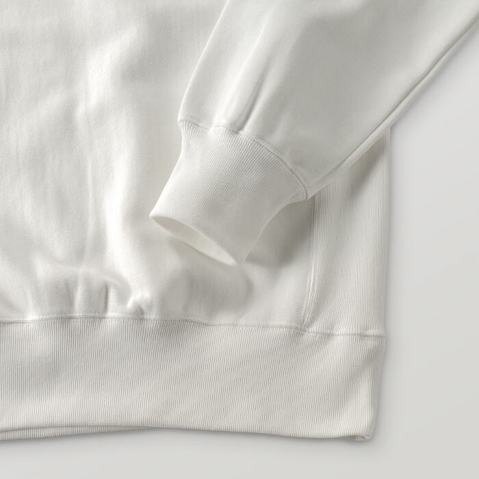 オープンエンド糸特有のザラつき感があり、しっかした強度のある厚手の裏起毛スウェットです。